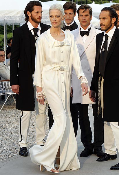 colección ‘Crucero 2012’ de Chanel. El marco fue incomparable: una pasarela a orillas del mar flanqueada por enormes sombrillas, que sirvió de antesala a una fiesta amenizada por el cantante Bryan Ferry. Pero quizá, el plato fuerte lo puso el ‘front row’ del desfile, en el que destacó la presencia de una de las grandes amigas del creador y admiradora de esta casa francesa, la